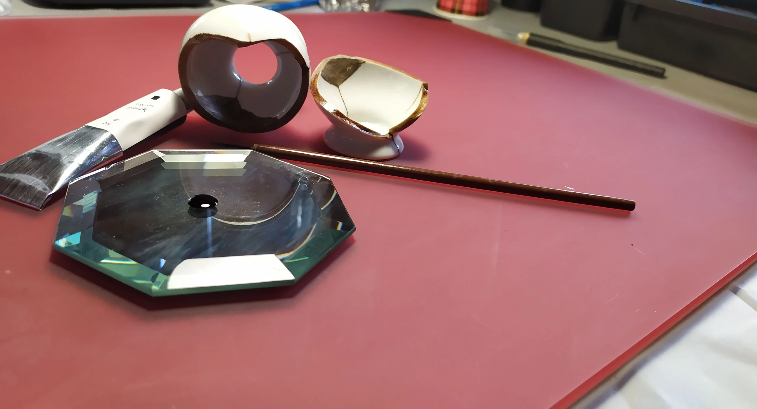 Nous avons décidé de nous rapprocher encore plus du Japon en pratiquant l’art du Kintsugi, restauration de céramique brisée…